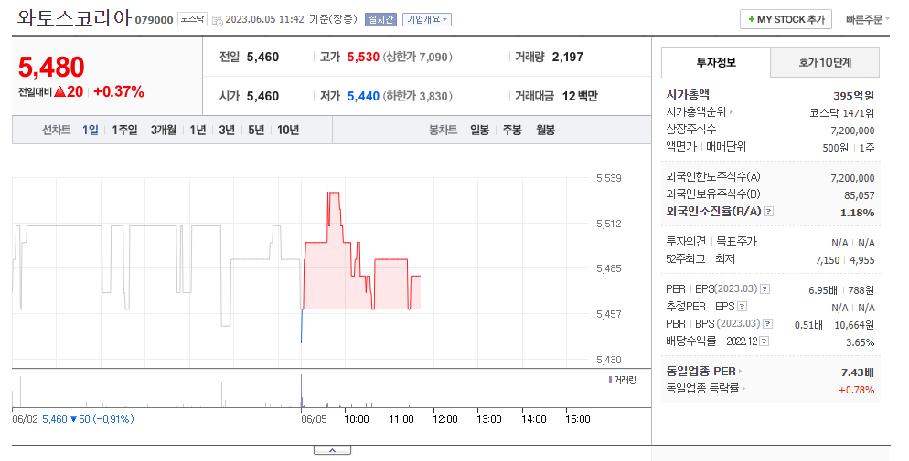 와토스코리아 주가 전망 상태 시장 흐름 분석