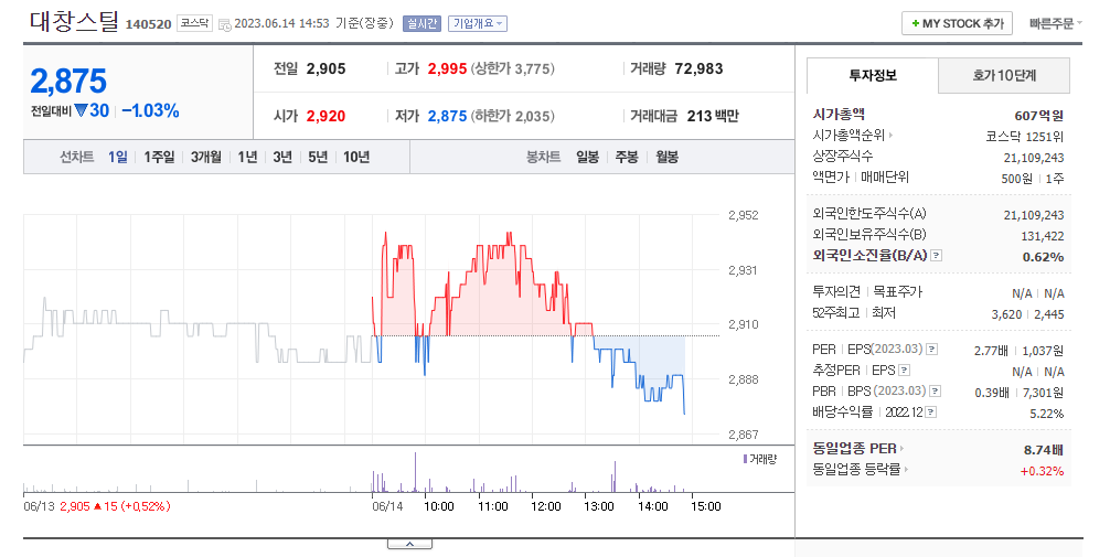이 글에서는 대창스틸 주가 전망과 목표 주가, 기업 정보에 대해서 설명합니다. 주식에 투자하기 전에는 기업 주가 정보와 재무 상태를 살펴보는 것이 굉장히 중요합니다. 대창스틸 주식의 주요 현황과 투자 정보를 확인하시고 주가 흐름을 정리해보겠습니다.