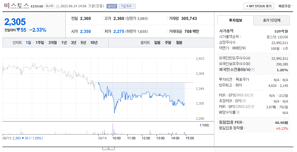 이 글에서는 비스토스 주가 전망과 목표 주가, 기업 정보에 대해서 설명합니다. 주식을 제대로 하기에 앞서 기업의 주가와 재무 정보에 대해서 알아보는 것이 필요합니다. 비스토스 주식의 주요 현황과 투자 정보를 확인하시고 지금 시장에서 위치를 파악해보겠습니다.