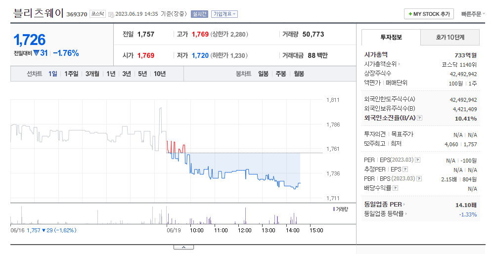 이 글에서는 블리츠웨이 주가 전망과 목표 주가, 기업 정보에 대해서 설명합니다. 주식을 사기 전에 기업의 주가와 재무 정보에 대해서 분석하는 것이 필요합니다. 블리츠웨이 주식의 주요 현황과 투자 정보를 확인하시고 현재 시장에서의 위치를 분석해보겠습니다.