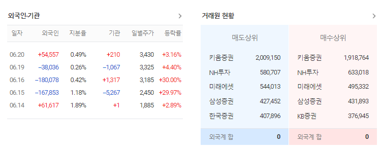 그래서 개인 투자세력은 외국인이나 기관의 투자를 따라할 수 밖에 없습니다. 자본이 약한 개인 투자자는 어떤 것들을 매수하고 매도하는지 따라만 해도 수익을 낼 수 있습니다. 지금 시장에서는 외국인 세력보다는 기관 투자를 따라가는 경향이 강합니다. 외국인 세력은 속임수를 쓸 수 있고개인 투자자들이 원하는 단기 거래는 기관과 비슷하기 때문입니다.