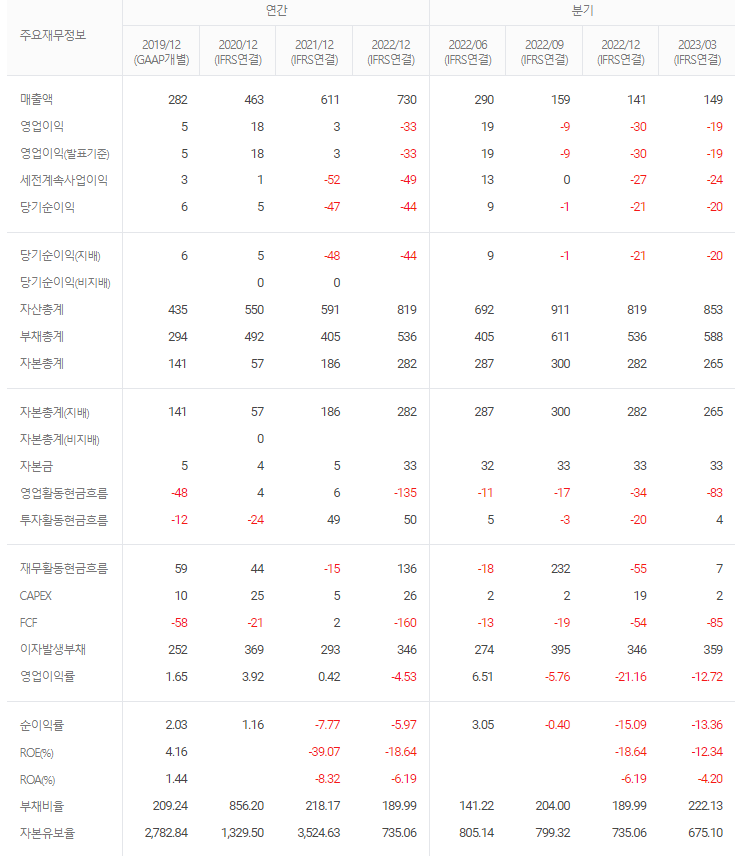 -2023년 3월 전년동기 대비 연결기준 매출액은 6.1% 증가, 영업손실은 46.1% 증가, 당기순손실은 43.7% 감소. 매출이 증가하였으나 운반비와 인건비 상승으로 영업손실은 증가함. 외화환산이익 등 기타수익의 증가로 당기순손실은 감소함. 농업인구 감소 및 고령화로 인해 성장에 한계가 있는 화학비료 시장에서 동사는 꾸준한 연구개발로 및 농식품 수출 사업에 진출하며 글로벌 농업 전문기업으로 도약하고 있음.