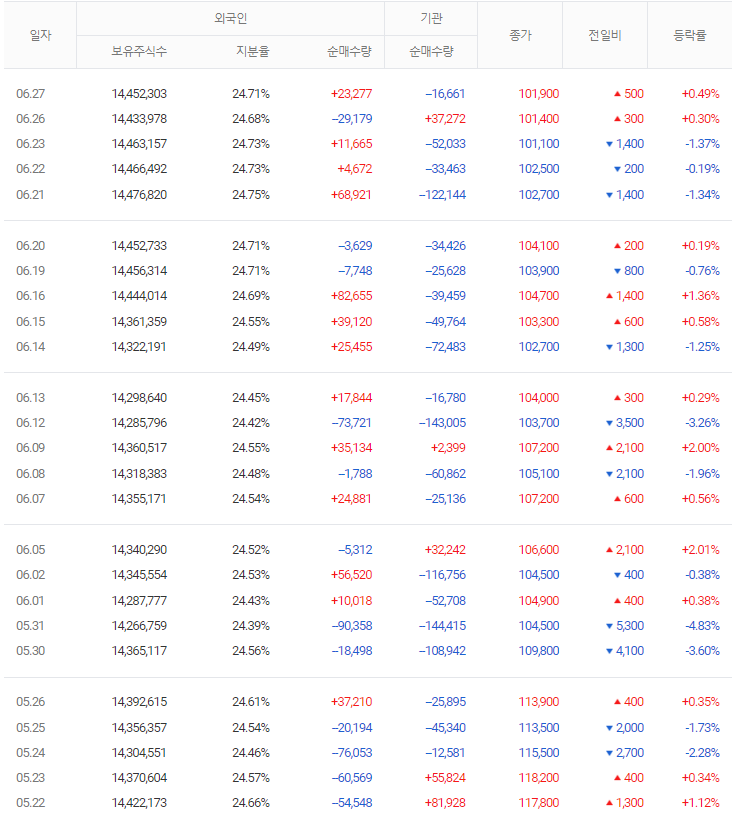 물론 가장 좋은 것은 외국인과 기관이 같이 매수하는 쌍끌이 종목을 공략하는 방법입니다. 양대 매수주체들이 동시에 매수한다는 것은 좋은 종목이라는 것을 의미합니다. 주가 전망을 분석하려면 기업 정보를 분석하고 시장에서의 위치를 분석해야 합니다. 거기에 기관과 외국인 매수 흐름을 확인한다면 성공 확률을 올릴 수 있습니다.