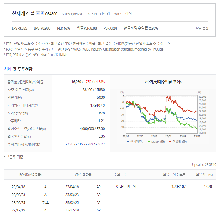 신세계건설 주가 분석