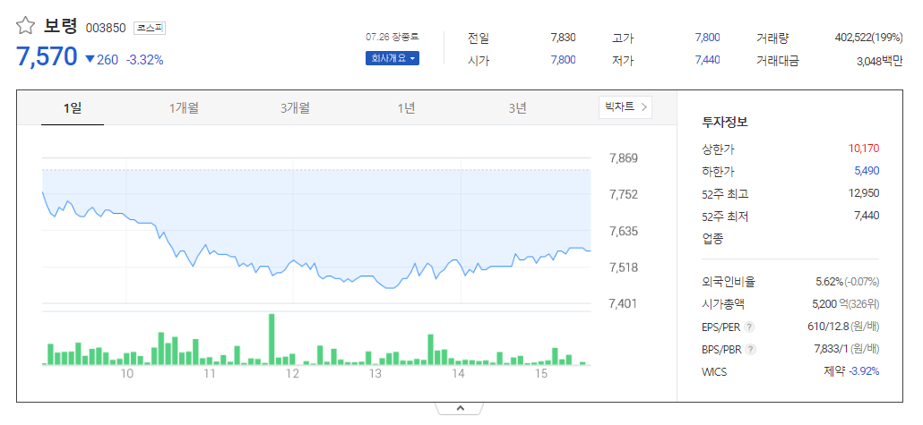 보령 주가 전망 현황과 주식에서 기업 순위