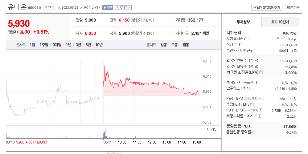 이 글에서는 유니온머티리얼 주가 전망과 목표 주가, 기업 정보에 대해서 설명합니다. 주식을 알아보기 전에 기업 주가 정보와 재무 상태를 알아보는 것은 매우 중요합니다. 유니온머티리얼 주식의 주요 현황과 투자 정보를 확인하시고 지금 시장에서 위치를 파악해보겠습니다.