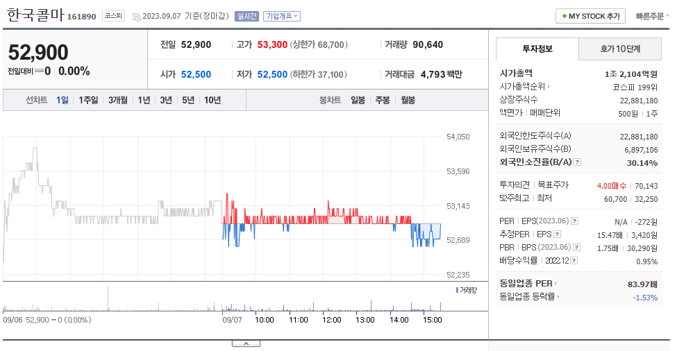 이 글에서는 한국콜마 주가 전망과 목표 주가, 기업 정보에 대해서 설명합니다. 주식 거래에서 중요한 부분은 현재 기업 가치보다는 미래의 기업 가치를 예측하고 먼저 행동하는 것입니다. 투자할 종목을 고르기 전에 현재 기업의 상황과 지표를 살펴보는 것이 중요합니다. 한국콜마 주식의 주요 현황과 투자 정보를 확인하시고 주식 투자에 도움을 줄 자료들을 모아 두었으니 투자에 도움을 받으시길 바랍니다..