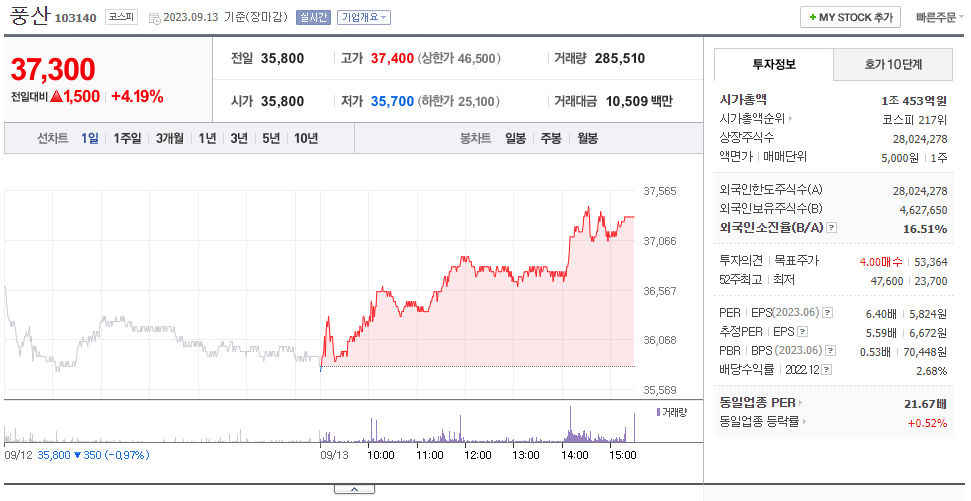 이 글에서는 풍산 주가 전망과 목표 주가, 기업 정보에 대해서 설명합니다. 주식 시장에서 중요한 것은 미래의 기업 가치를 예측하고 선제적으로 움직이는 것입니다. 투자 대상을 선택하기 전에 현재 기업의 현황과 데이터를 확인하는 것이 필요합니다. 풍산 주식의 주요 현황과 투자 정보를 확인하시고 주식 투자에 도움이 될 만한 정보들을 모아 놓았으니 투자를 고려하실 때 참고하세요..