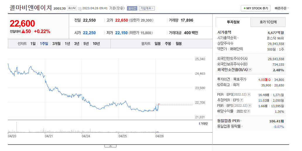 이 글에서는 콜마비앤에이치 주가 전망과 목표 주가, 기업 정보에 대해서 설명합니다. 주식 투자 전에 정확한 기업 정보와 주가 현황에 대해 정리해보는 것은 아주 중요합니다. 콜마비앤에이치 주식의 주요 현황과 투자 정보를 확인하시고 현재 시장 현황을 살펴보겠습니다.