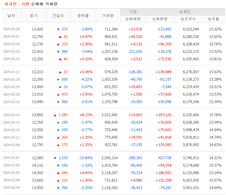 따라서 개인 투자자는 기관이나 외국인 세력을 따라야 하며, 세력이 약해도 투자를 통해 수익을 얻을 수 있습니다. 최근에 외국인보다 기관 투자자를 따르는 경향이 더 큰데, 외국인의 매수가 종종 불확실하고 개인의 단기 거래가 기관과 유사하기 때문입니다.