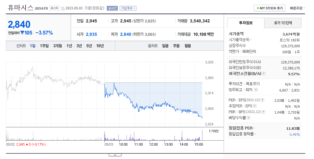 이 글에서는 휴마시스 주가 전망과 목표 주가, 기업 정보에 대해서 설명합니다. 주식투자 전에 기업 주가 정보와 재무 상태를 살펴보는 것이 굉장히 중요합니다. 휴마시스 주식의 주요 현황과 투자 정보를 확인하시고 현재 시장 흐름을 알아보겠습니다.