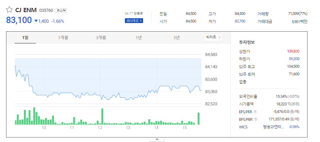 이 글에서는 CJ ENM 주가 전망과 목표 주가, 기업 정보에 대해서 설명합니다. 주식을 제대로 하기에 앞서 기업 정보를 확인하고 주가 정보에 대해 살펴보는 것이 필요합니다. CJ ENM 주식의 주요 현황과 투자 정보를 확인하시고 지금 시장 상태를 분석해보겠습니다.
