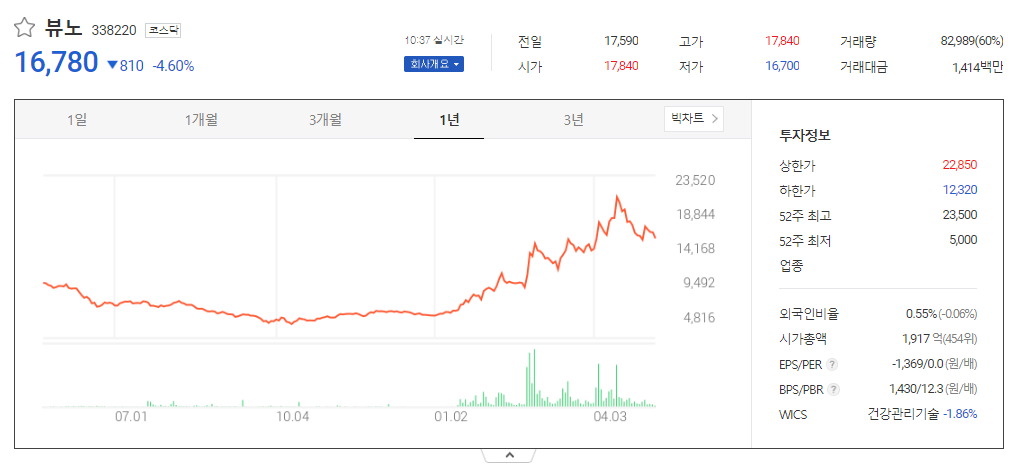 이 글에서는 뷰노 주가 전망과 목표 주가, 기업 정보에 대해서 설명합니다. 주식을 사기 전에 기업의 주가와 재무 정보에 대해서 살펴보는 것은 굉장히 중요합니다. 뷰노 주식의 주요 현황과 투자 정보를 확인하시고 지금 시장에서 위치를 파악해보겠습니다.