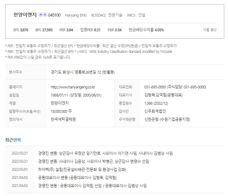 한양이엔지 가치 분석