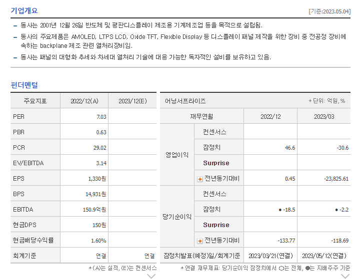 -2022년 12월 전년동기 대비 연결기준 매출액은 11.1% 감소, 영업이익은 21.9% 증가, 당기순이익은 15.9% 증가. 동사 열처리 장비는 LCD 분야 LTPS-TFT 기판 제조, Oxide TFT Back- plane 제조, Flexible Display 패널 제작에 필수적으로 적용됨. 디스플레이용 열처리 장비는 2세대부터 8세대 장비로 장비 규모가 커지고, 고성능의 기능이 지원될수록 납품 단가가 높아짐.