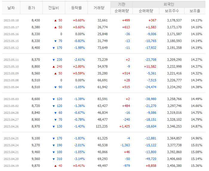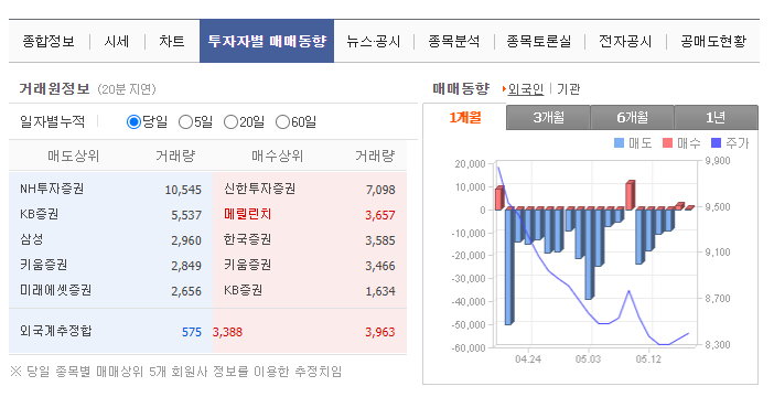 그렇기에 개인 투자자는 외국인이나 기관 투자자를 따라가는 방법밖에 없습니다. 세력이 약한 개인 투자자는 기관과 외국인의 매수 현황을잘 관찰하면 수익을 낼 수 있습니다. 최근 흐름은 외국인 보다 기관의 흐름을 따라가는 경향이 강합니다. 외국인 세력은 속임수를 쓸 수 있고개인 투자자들이 좋아하는 단기 투자는 기관투자가 적합하기 때문입니다.