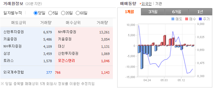 그렇기에 개인 매수 세력은 기관이나 외국인 세력들을 따라갈 수 밖에 없습니다. 자본이 약한 개인 투자자는 어떤 것들을 매수하고 매도하는지 확인만해도 수익을 낼 수 있습니다. 지금은 외국인보다는 기관 투자를 따라하는 경우가 많습니다. 외국인의 매수는 속임수가 있을 수 있고 개인 투자자들이 선호하는 단기 투자는 기관의 투자와 맞기 때문입니다.