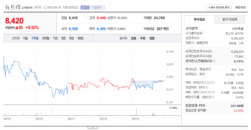 뉴트리 주가 전망 상태 시장 흐름 분석
