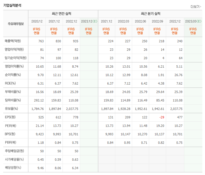 -2022년 12월 전년동기 대비 연결기준 매출액은 12.7% 증가, 영업이익은 15.6% 감소, 당기순이익은 27.1% 증가. 시장 수요 확대에 따른 높은 매출에도 원가 및 판관비, 인건비는 계속 증가세에 있어 수익성은 하락하고 있음. 천연화장품 인증제도에 맞추어 여러 품목의 COSMOS 인증을 완료 및 추가 진행 중에 있으며, 최근에는 RSPO 정식인증 제품 유통라이선스를 획득하였음.