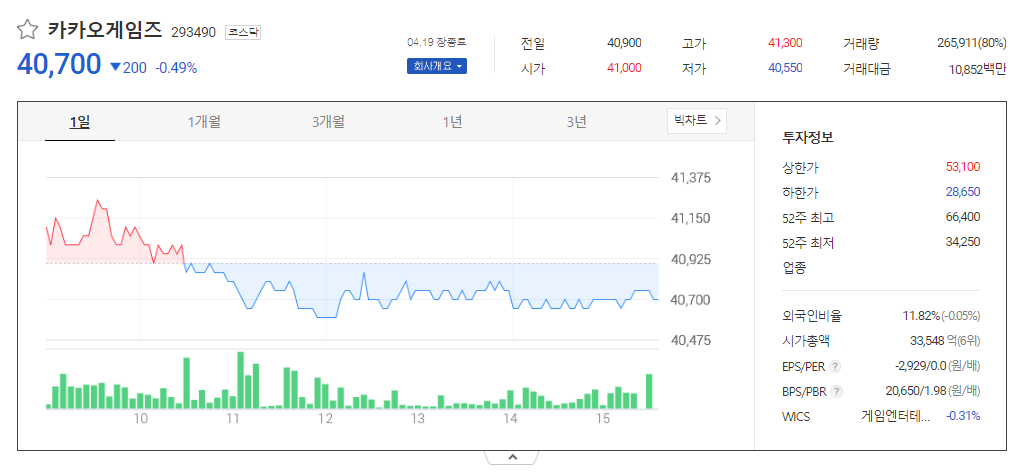 이 글에서는 카카오게임즈 주가 전망과 목표 주가, 기업 정보에 대해서 설명합니다. 주식 투자 전에 기업 현황고 현재 시장 흐름에 대해서 알아보는 것은 아주 중요합니다. 카카오게임즈 주식의 주요 현황과 투자 정보를 확인하시고 현재 시장 현황을 살펴보겠습니다.