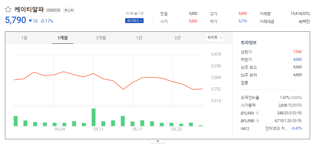 이 글에서는 케이티알파 주가 전망과 목표 주가, 기업 정보에 대해서 설명합니다. 주식투자 전에 기업 주가와 재무 현황표에 대해서 살펴보는 것이 굉장히 중요합니다. 케이티알파 주식의 주요 현황과 투자 정보를 확인하시고 지금 시장에서 위치를 파악해보겠습니다.