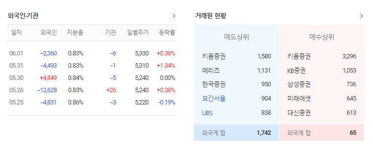 이중에 가장 좋은 것은 외국인과 기관이 같이 매수하는 쌍끌이 주식을 살펴보는 방법입니다. 양대 매수주체들이 같이 매수한다는 뜻은 좋은 종목이라는 것을 의미합니다. 주가 전망을 분석하려면 기업체를 우선 분석하고 시장에서의 위치를 확인해야 합니다. 그리고 기관이나 외국인 매수 매도까지 찾아본다면 수익을 낼 확률을 올리는 것이 가능합니다.