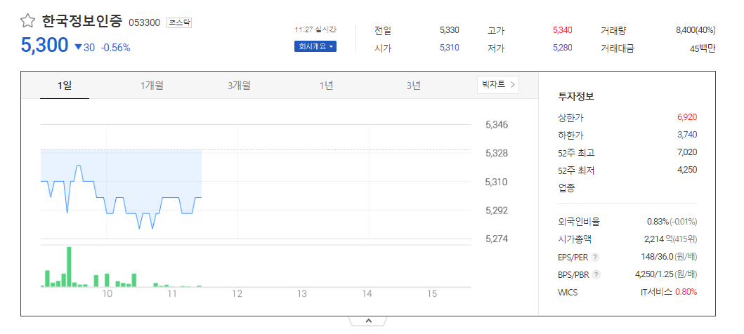 한국정보인증 주가 분석